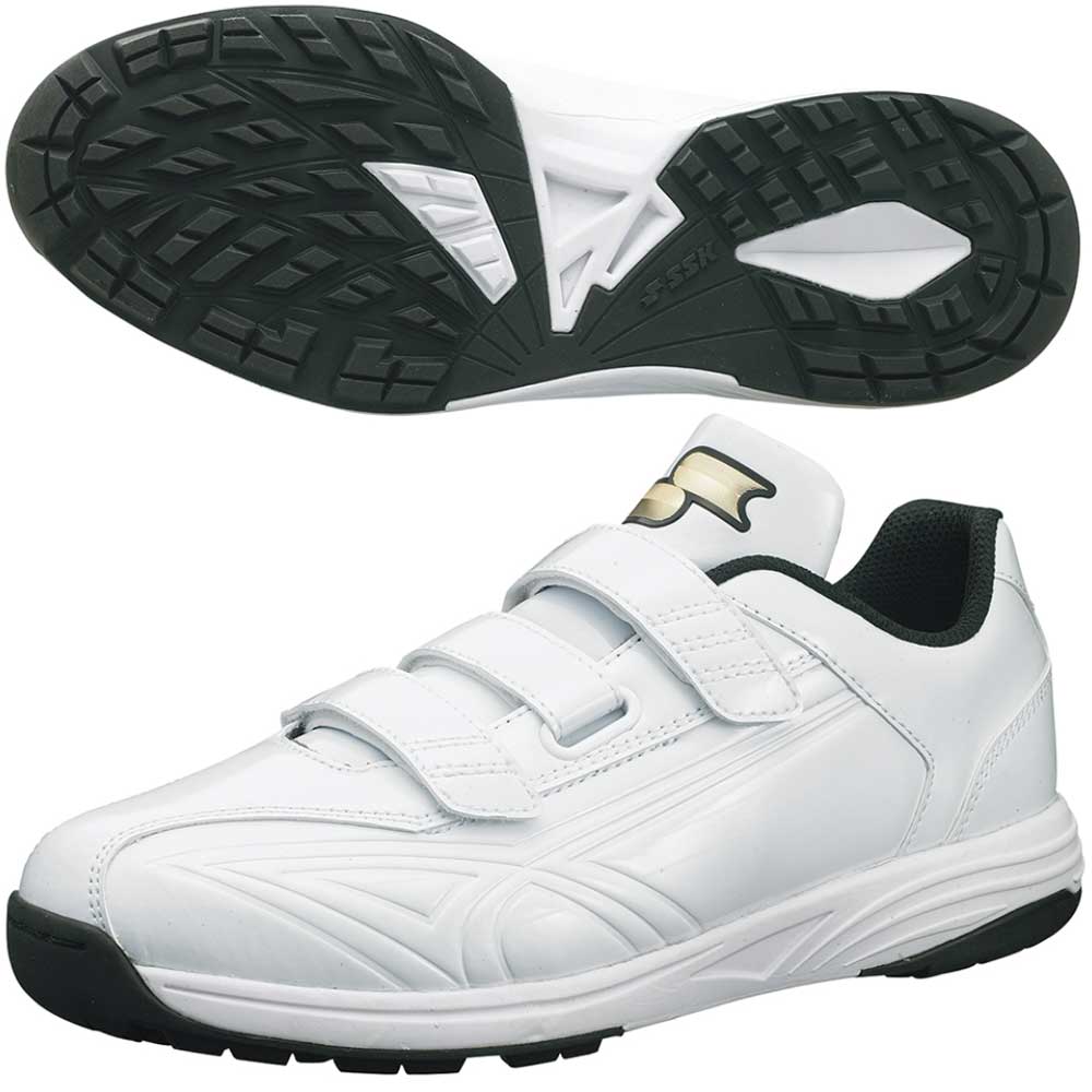 アップシューズ 野球 白 3本ベルト SSK エスエスケイ 野球 トレーニングシューズ マジックテープ ベルクロ 中学生 高校生 野球部 部活 トレシュー