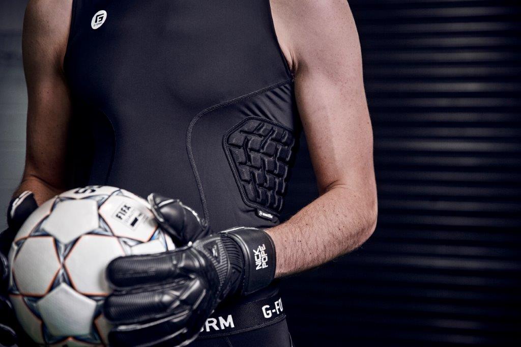 ・体にぴったりフィットする衝撃吸収SmartFlex パッドは、軽量でプレー中にも柔軟性があり、衝撃が加わると硬化することで肋骨周りを衝撃から保護します。