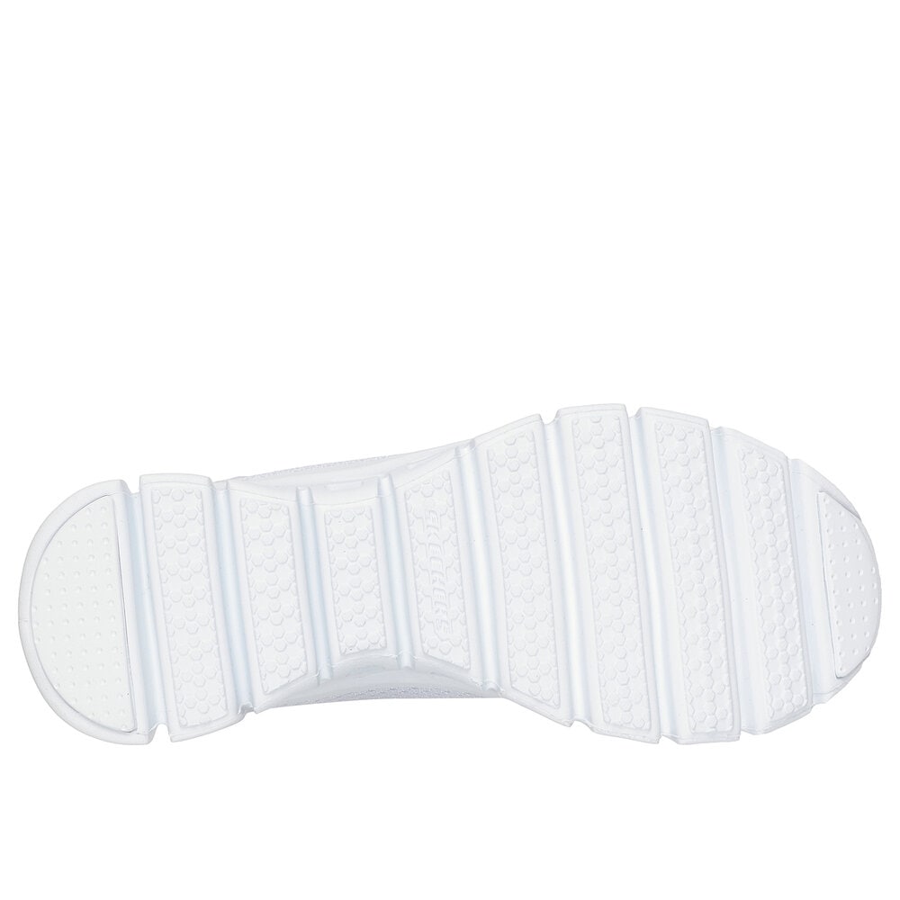 メッシュのアッパー、固定式ストレッチレースのフロント、Skechers Air-Cooled Memory Foam(スケッチャーズ エアクールドメモリーフォーム)インソール、Glide-Step(グライドステップ)ミッドソールが特長です。