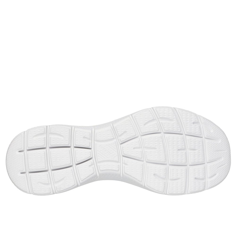 固定式ストレッチレースを配したエンジニアードメッシュのアッパーと、クッション性のあるSkechers Air-Cooled Memory Foam(スケッチャーズ エアクールドメモリーフォーム)コンフォートインソールが特長です。